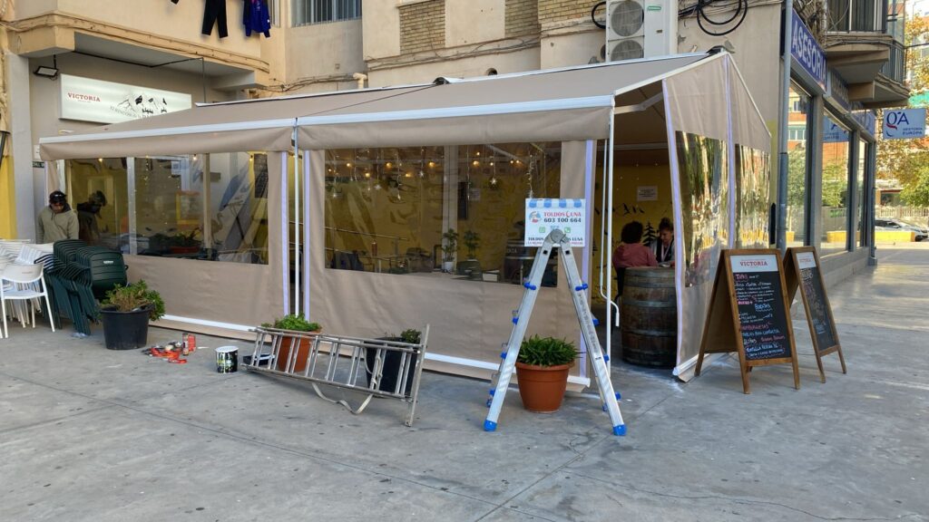 Instalación de Toldo Store con Brazo Barandilla en el Centro de Málaga (Calle Palestina)